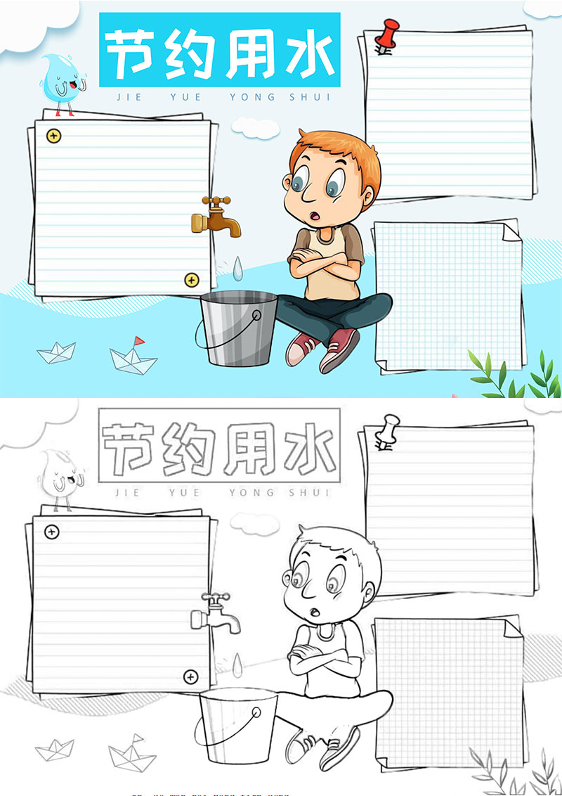 节约用水保护环境小学生word手抄报小报模板