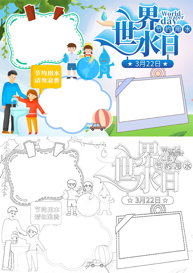 **卡通节约用水环保小报手抄报Word模板,格式为word,可用于手抄报/小报演讲展示,文字图片可以直接替换,使用简单方便。**