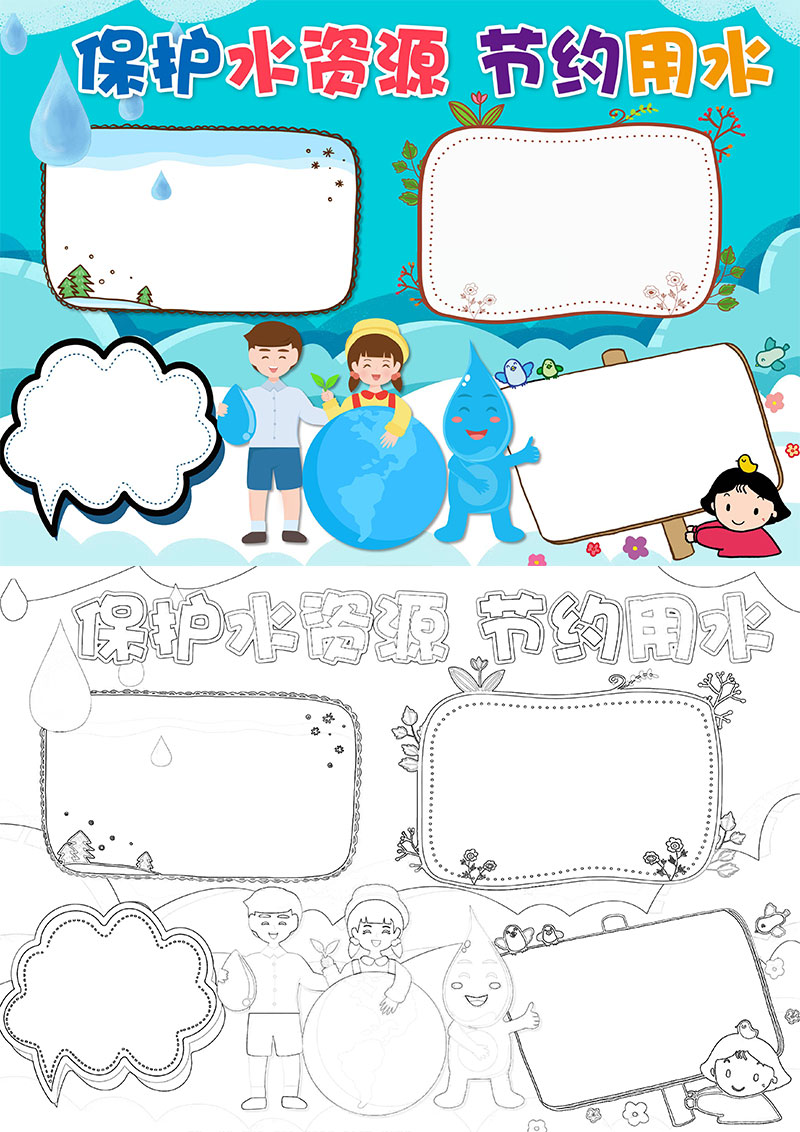 **节约用水卡通爱护水资源word手抄报,格式为word,可用于手抄报/小报演讲展示,文字图片可以直接替换,使用简单方便。**
