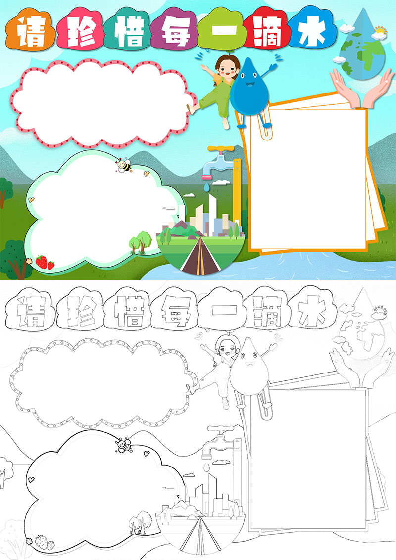 **节约用水保护地球word手抄报小报模板,格式为word,可用于手抄报/小报演讲展示,文字图片可以直接替换,使用简单方便。**