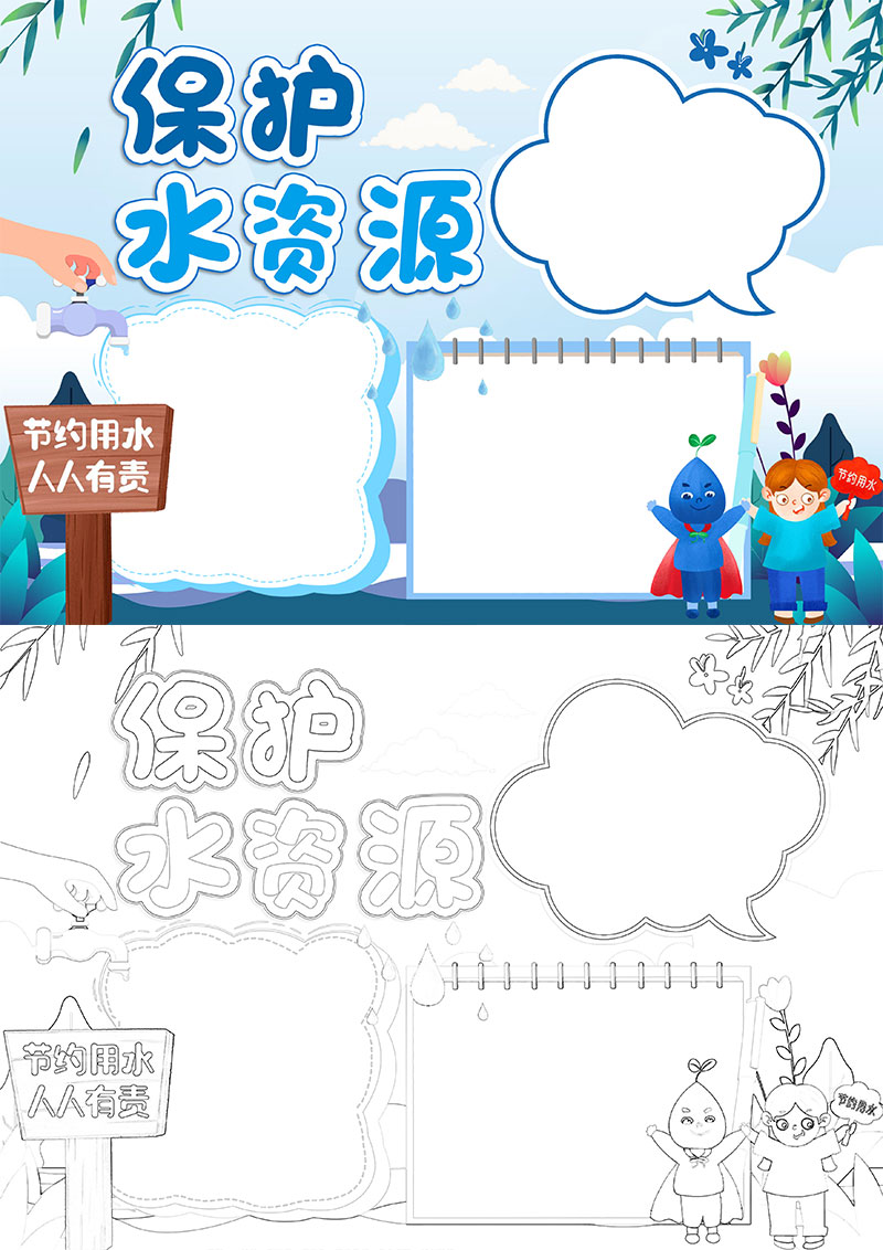 **小清新简约节约用水手抄报word模板,格式为word,可用于手抄报/小报演讲展示,文字图片可以直接替换,使用简单方便。**