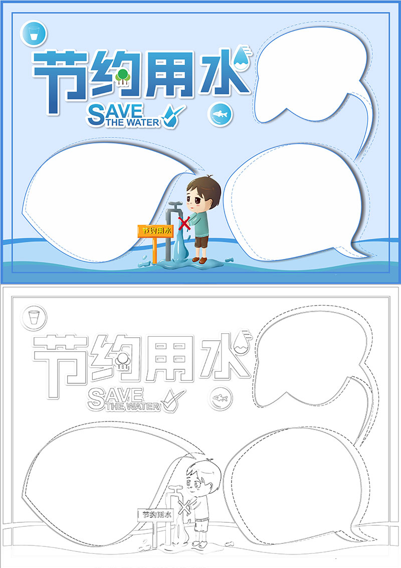 **卡通清新节约用水保护水资源word模板,格式为word,可用于手抄报/小报演讲展示,文字图片可以直接替换,使用简单方便。**