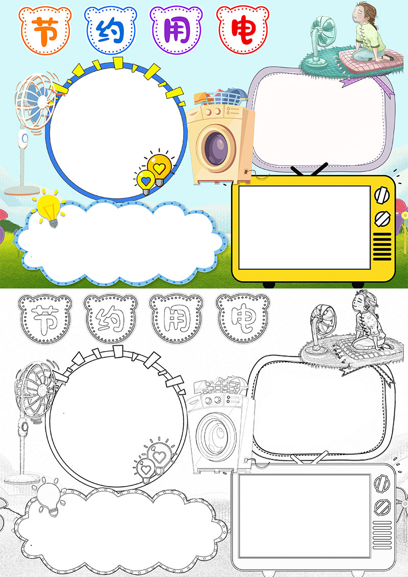 蓝色卡通节约用电手抄报小报word模板