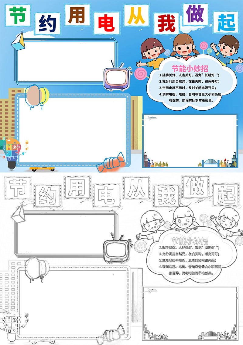 节约用电从我做起小报手抄报word模板
