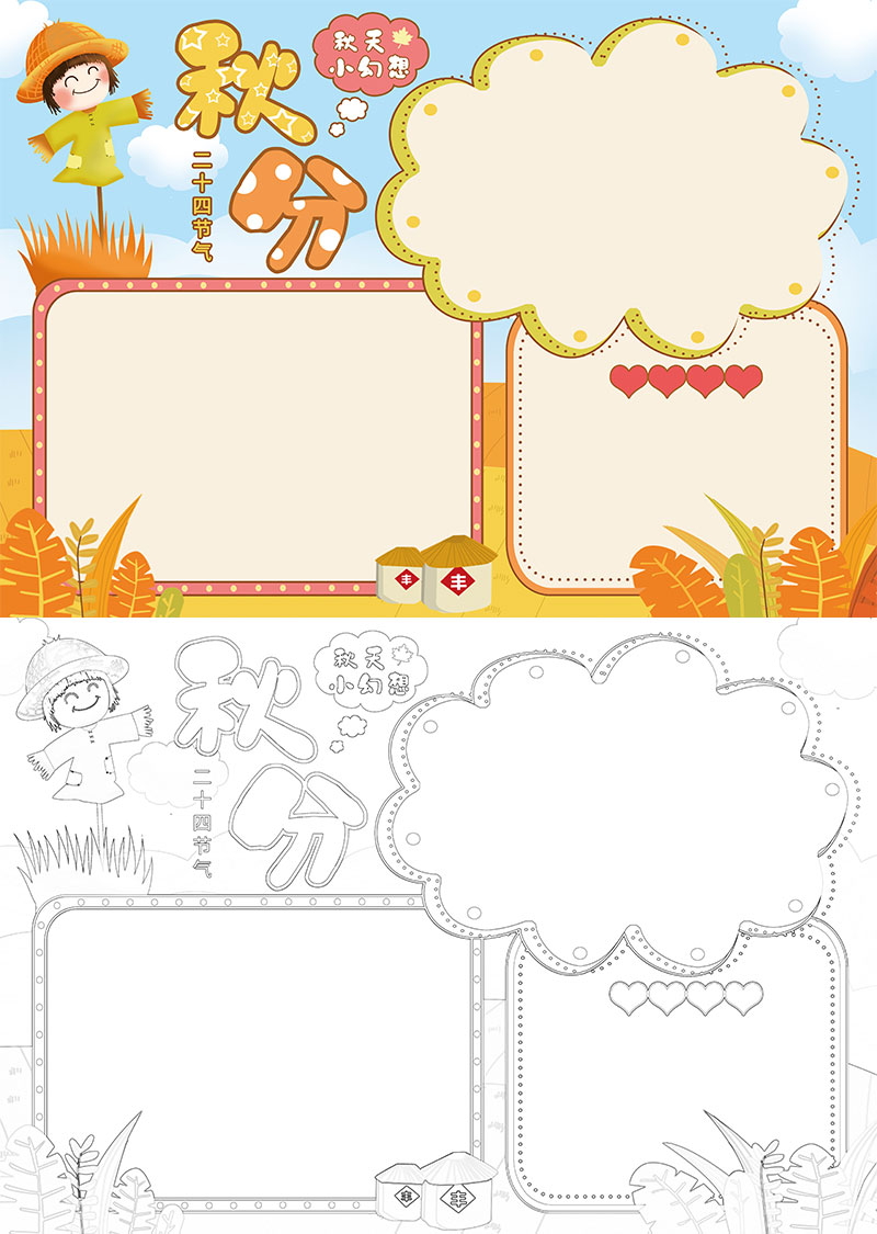 **卡通黄色立秋节气手抄报黑白线描小报,格式为word,可用于手抄报/小报演讲展示,文字图片可以直接替换,使用简单方便。**