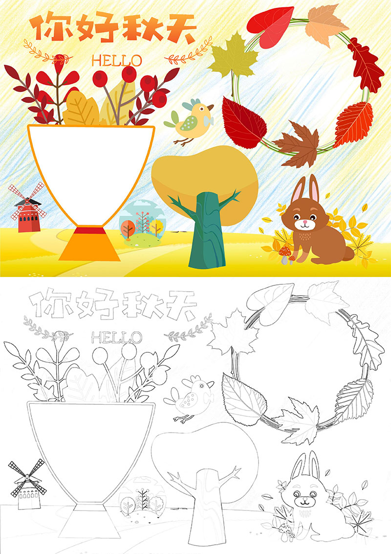 **黄色卡通观秋光手抄报word模板,格式为word,可用于手抄报/小报演讲展示,文字图片可以直接替换,使用简单方便。**