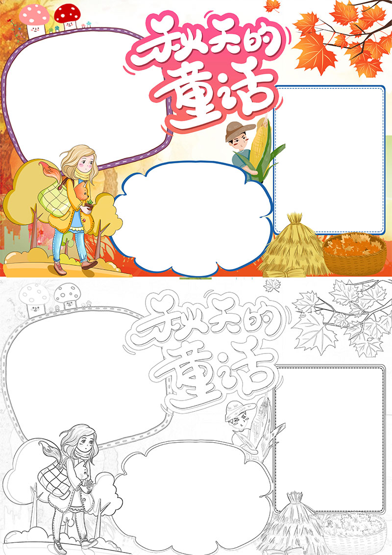秋天的童话黄色卡通立秋卡通小报手抄报小报节日手抄报