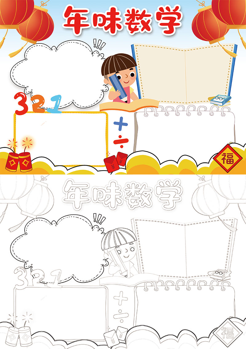 年味数学小报2023新年元旦春节小学生数学电子手抄报模板新年中的数学