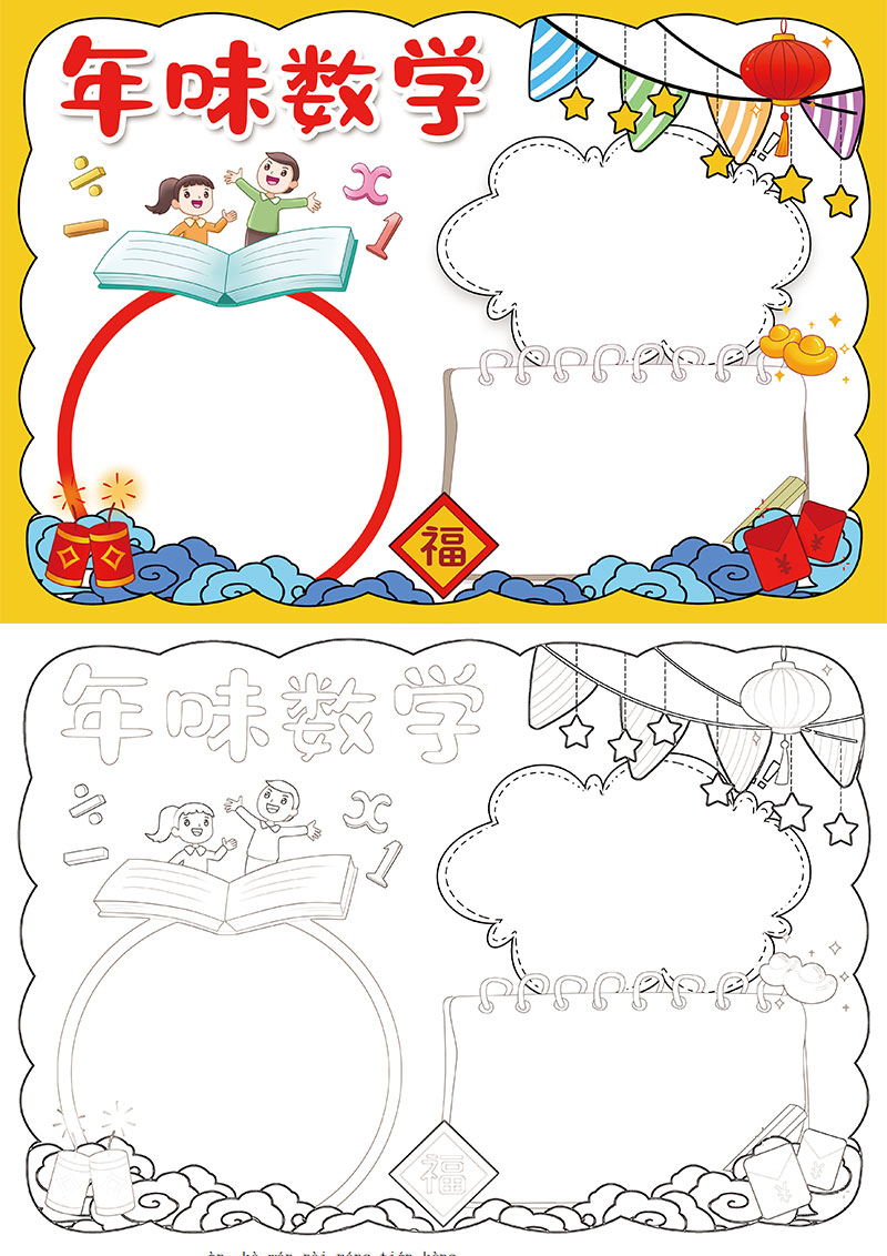 年味数学小报新年元旦春节小学生word模板新年中的数学