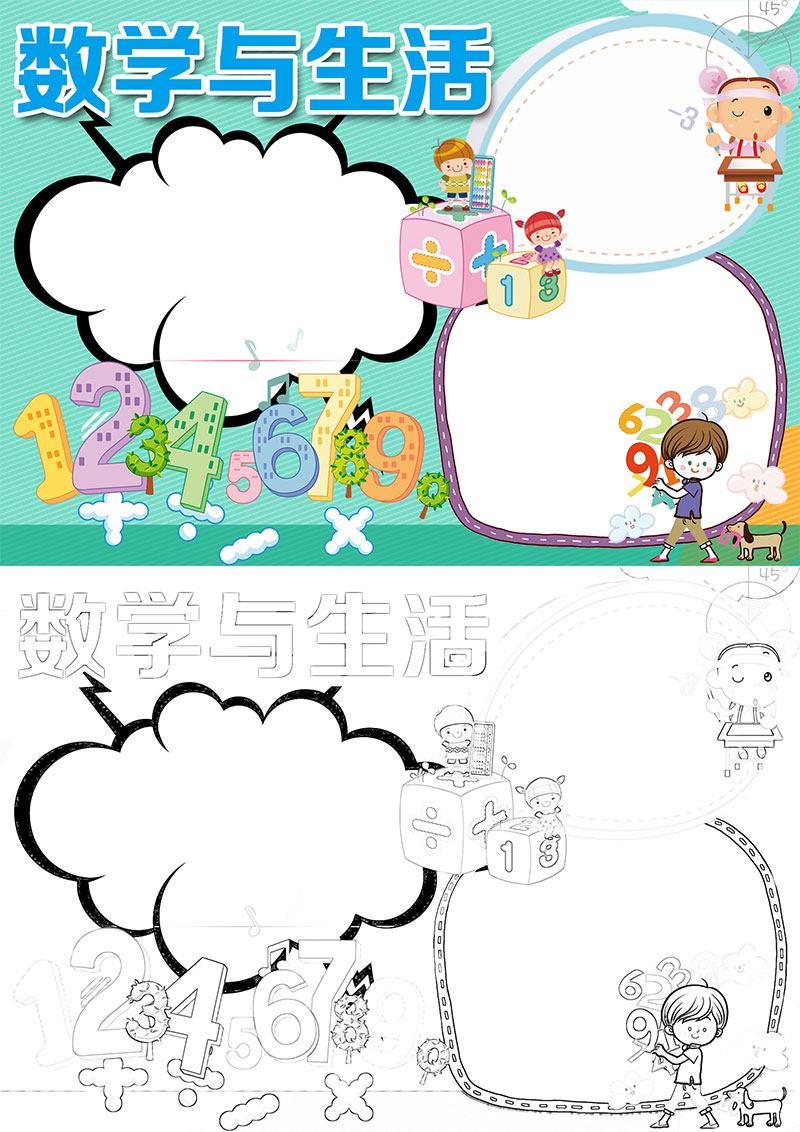 **蓝色卡通数学与生活小报手抄报word模板,格式为word,可用于手抄报/小报演讲展示,文字图片可以直接替换,使用简单方便。**