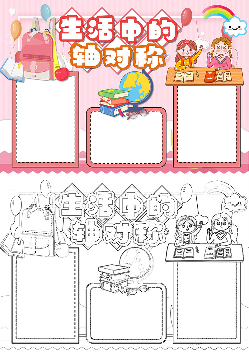 **粉色卡通生活中的轴对称数学小报手抄报word模板,格式为word,可用于手抄报/小报演讲展示,文字图片可以直接替换,使用简单方便。**