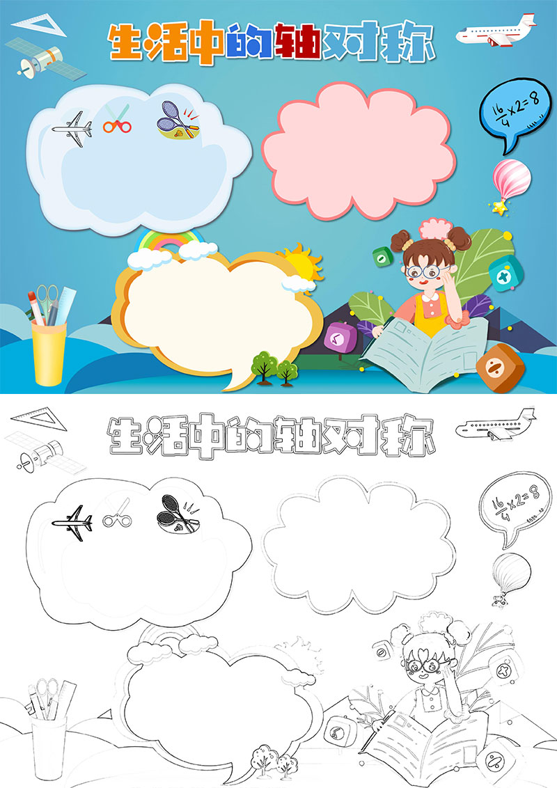 ** 彩色卡通生活中的轴对称数学小报手抄报,格式为word,可用于手抄报/小报演讲展示,文字图片可以直接替换,使用简单方便。**