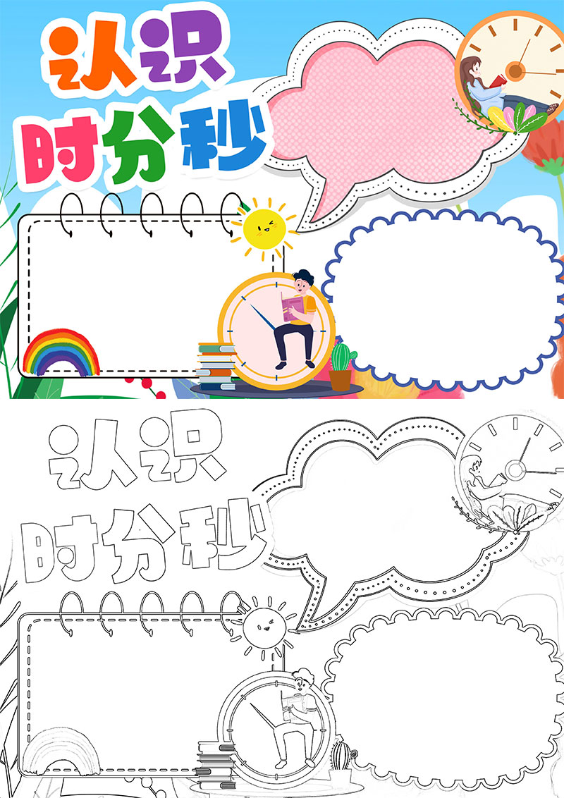 彩色卡通认识时分秒时分秒小报手抄报卡通时分秒小报手抄报