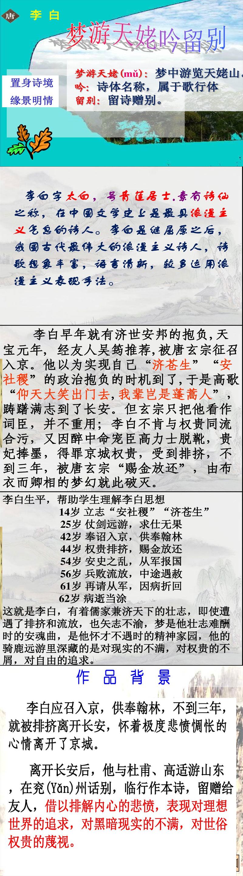 《梦游天姥吟留别》优秀课件(思路清晰,绝对实用)