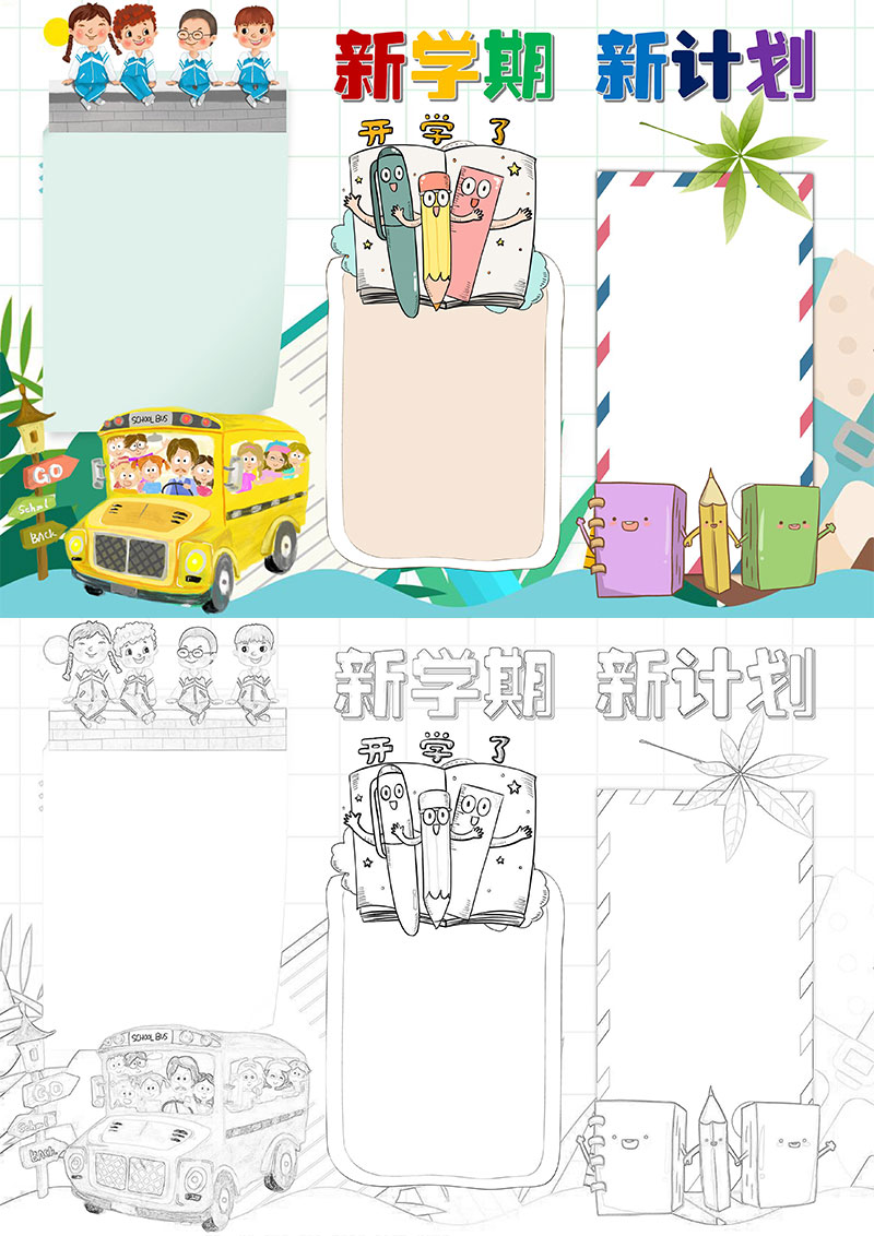 **手绘可爱新学期第一课手抄报开学,格式为word,可用于手抄报/小报演讲展示,文字图片可以直接替换,使用简单方便。**