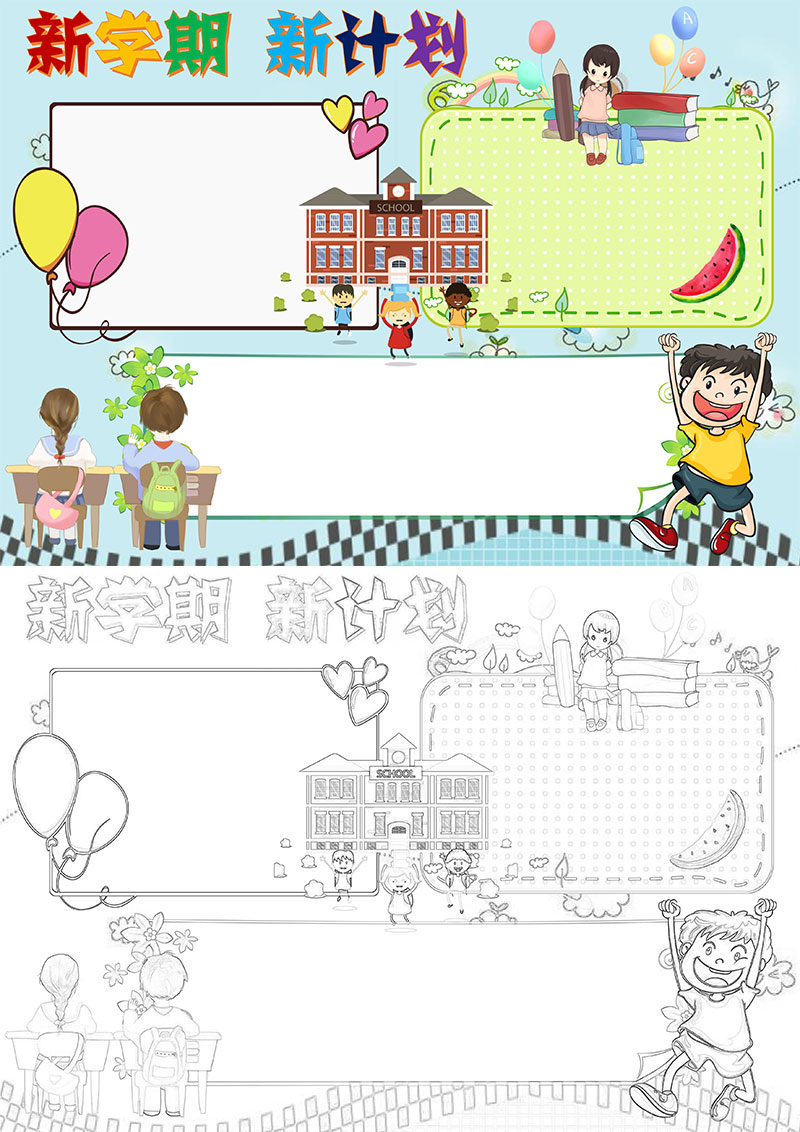 **新学期新计划手抄报开学啦电子小报模板,格式为word,可用于手抄报/小报演讲展示,文字图片可以直接替换,使用简单方便。**