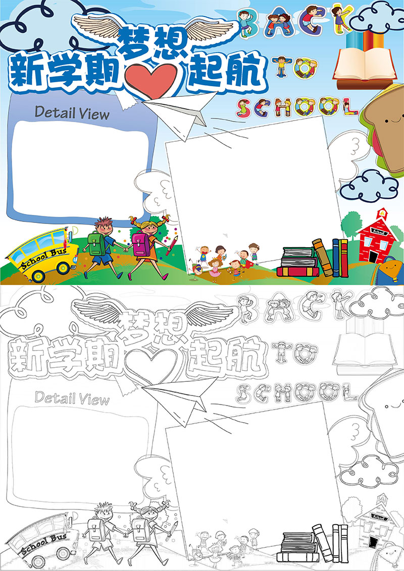 新学期梦想启航手抄报开学啦电子小报模板