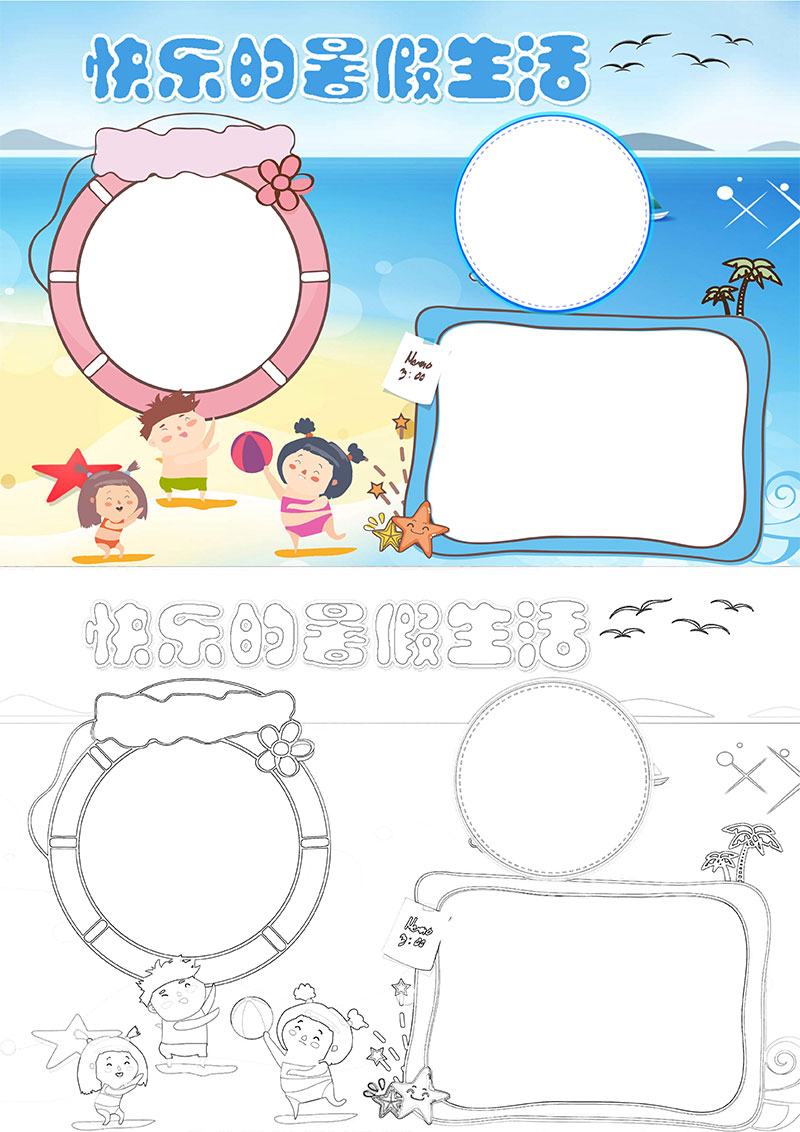 蓝色海洋快乐的暑假生活小报手抄报word模板