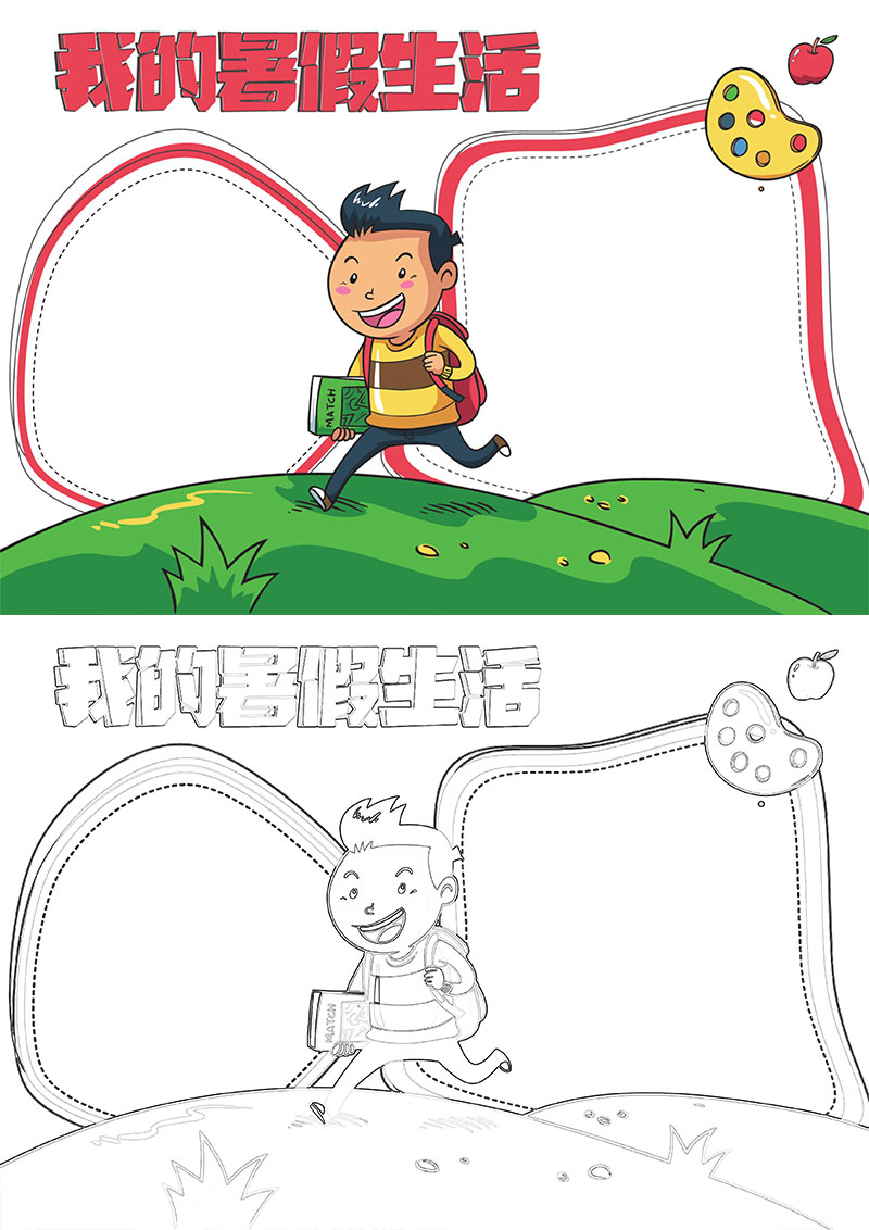 红色卡通我的暑假生活小报手抄报word模板