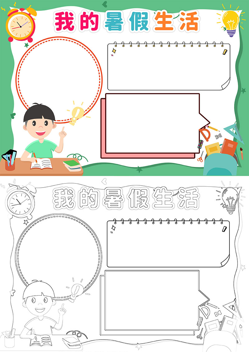 **绿色卡通我的暑假生活小报手抄报word模板,格式为word,可用于手抄报/小报演讲展示,文字图片可以直接替换,使用简单方便。**