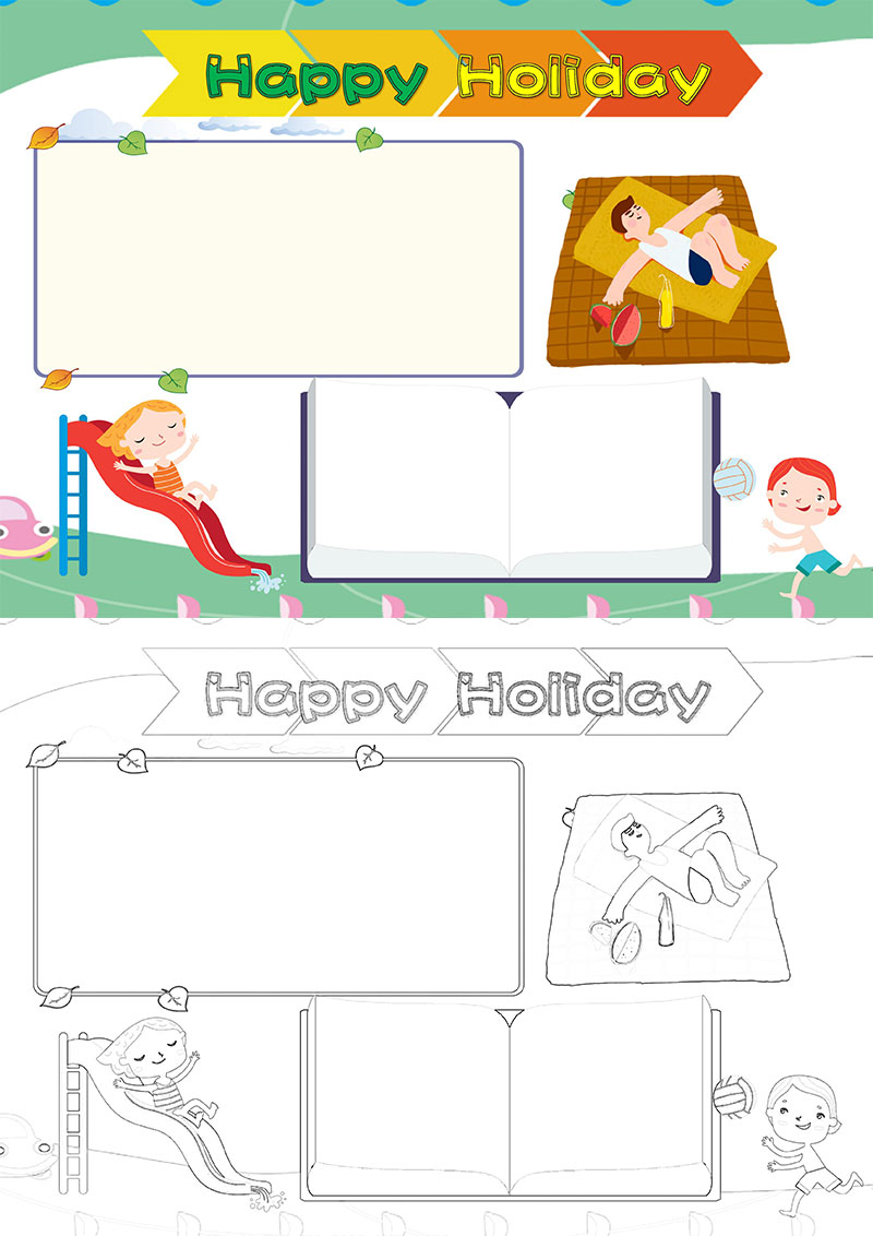 黄色卡通暑假英语word电子小报缤纷暑假生活英语小报我的暑假生活夏天卡通儿童夏日