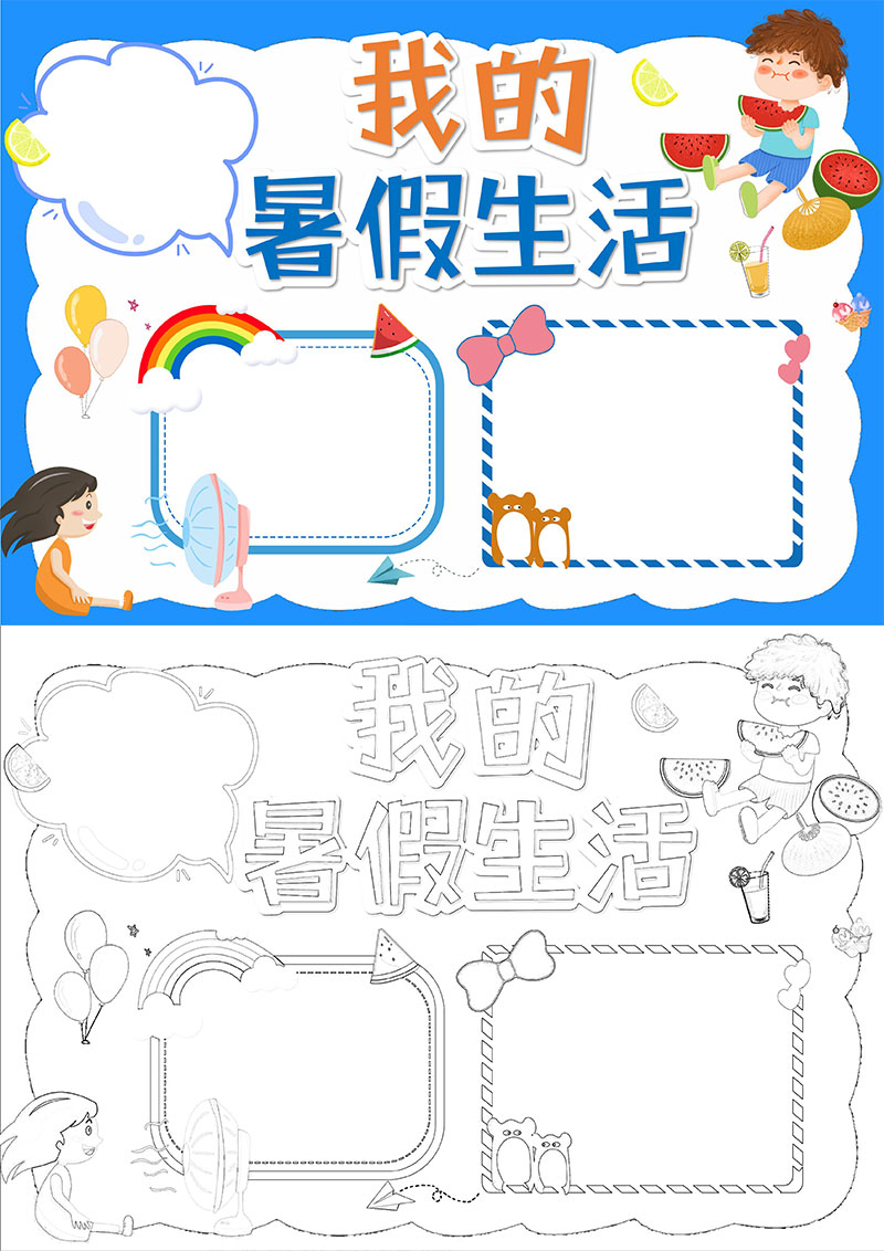 蓝色卡通暑假旅游空白小报手抄报卡通暑假旅游空白小报