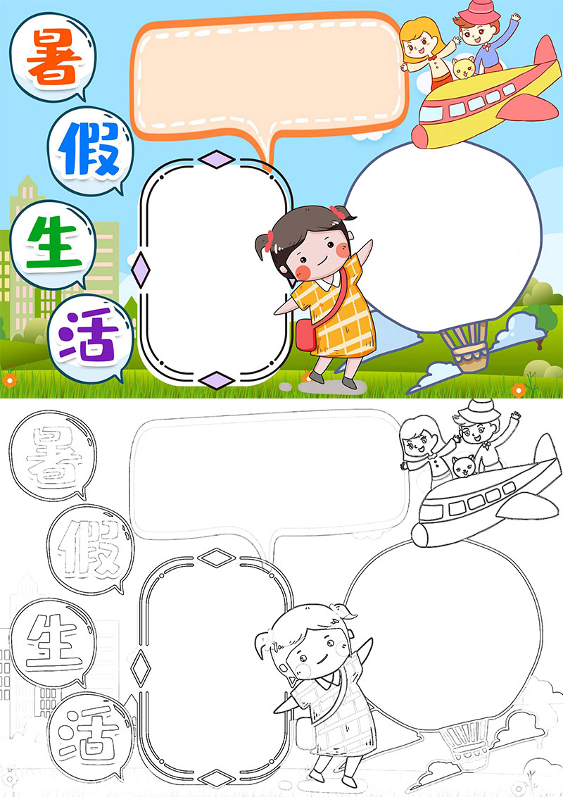 **绿色卡通快乐暑假快乐旅行暑假旅游卡通小报手抄报,格式为word,可用于手抄报/小报演讲展示,文字图片可以直接替换,使用简单方便。**