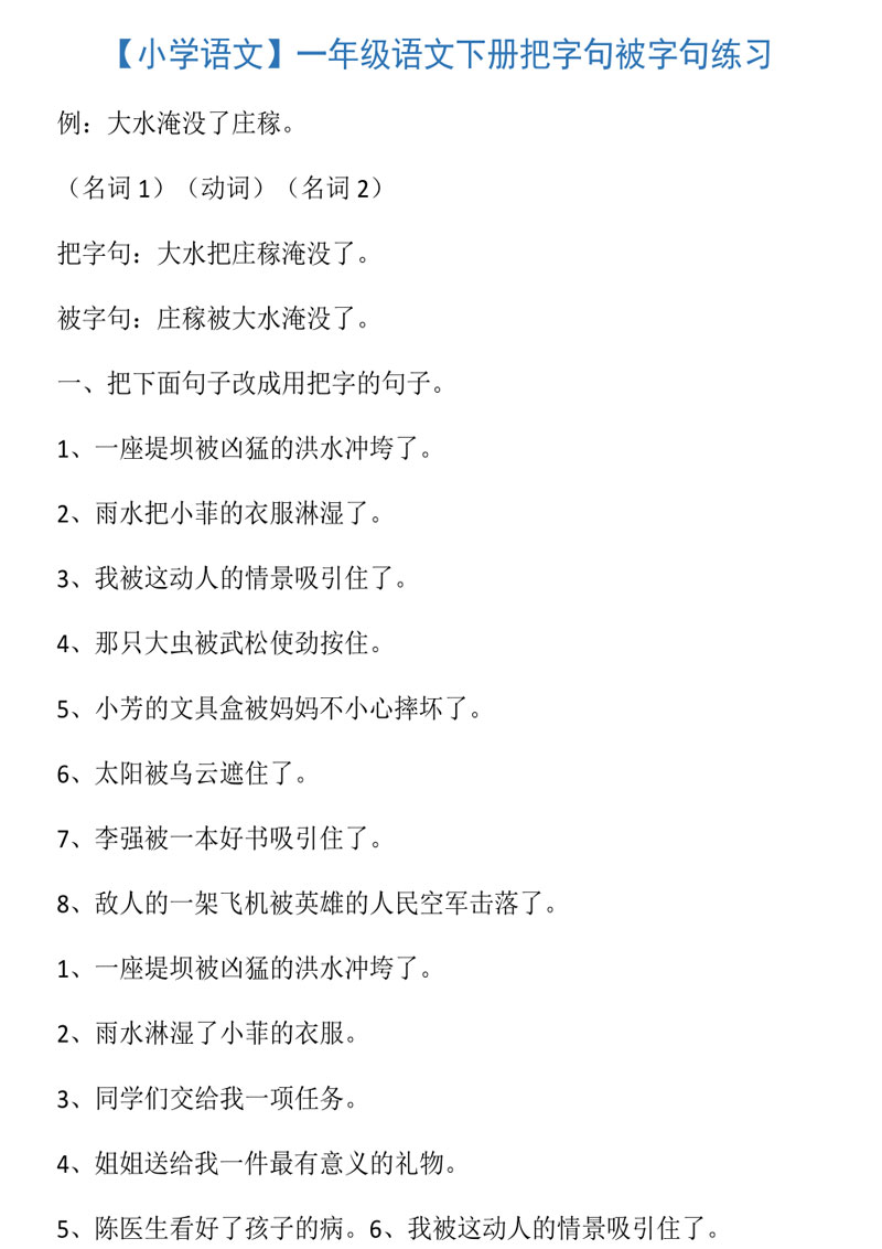 一年级语文下册把字句被字句练习