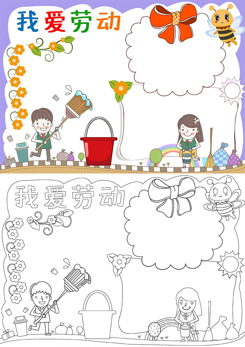 劳动节彩色卡通我是劳动小能手家务劳动电子小报手抄报