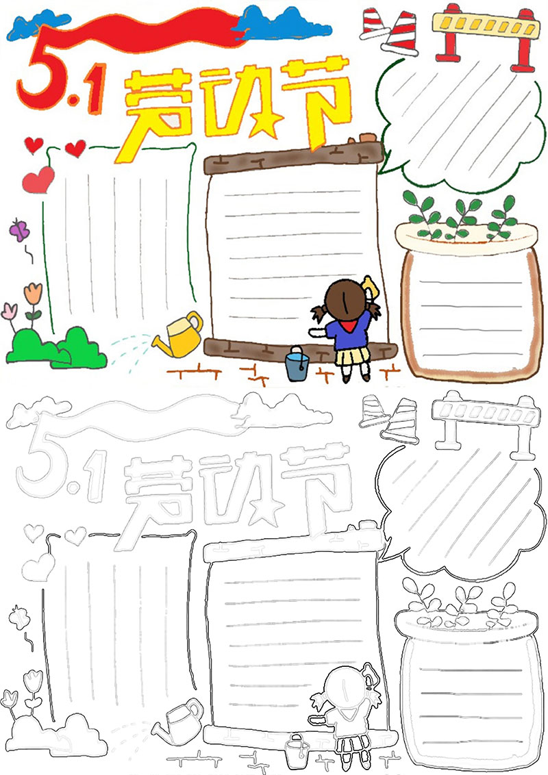 五一劳动节可爱卡通小报word模板手抄报