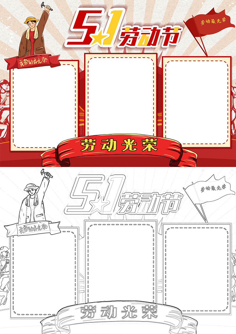 红色卡通五一劳动节小报word模板手抄报