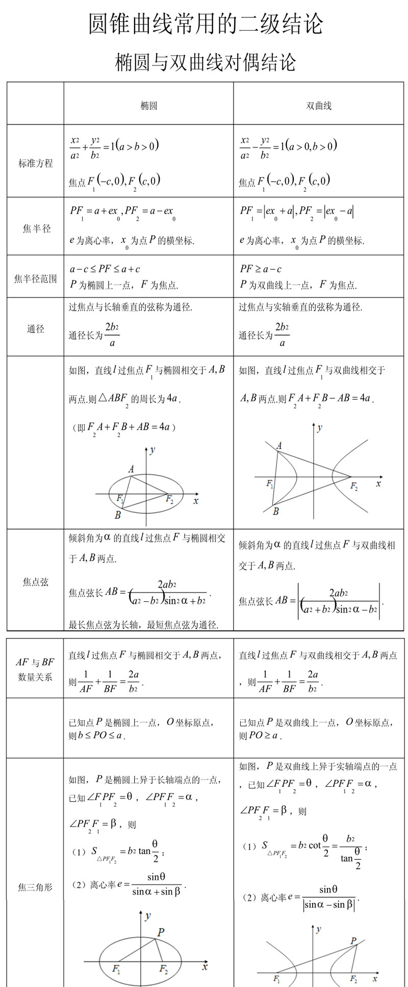 **圆锥曲线常用的二级结论,格式为pdf,共5页。可打印下载**