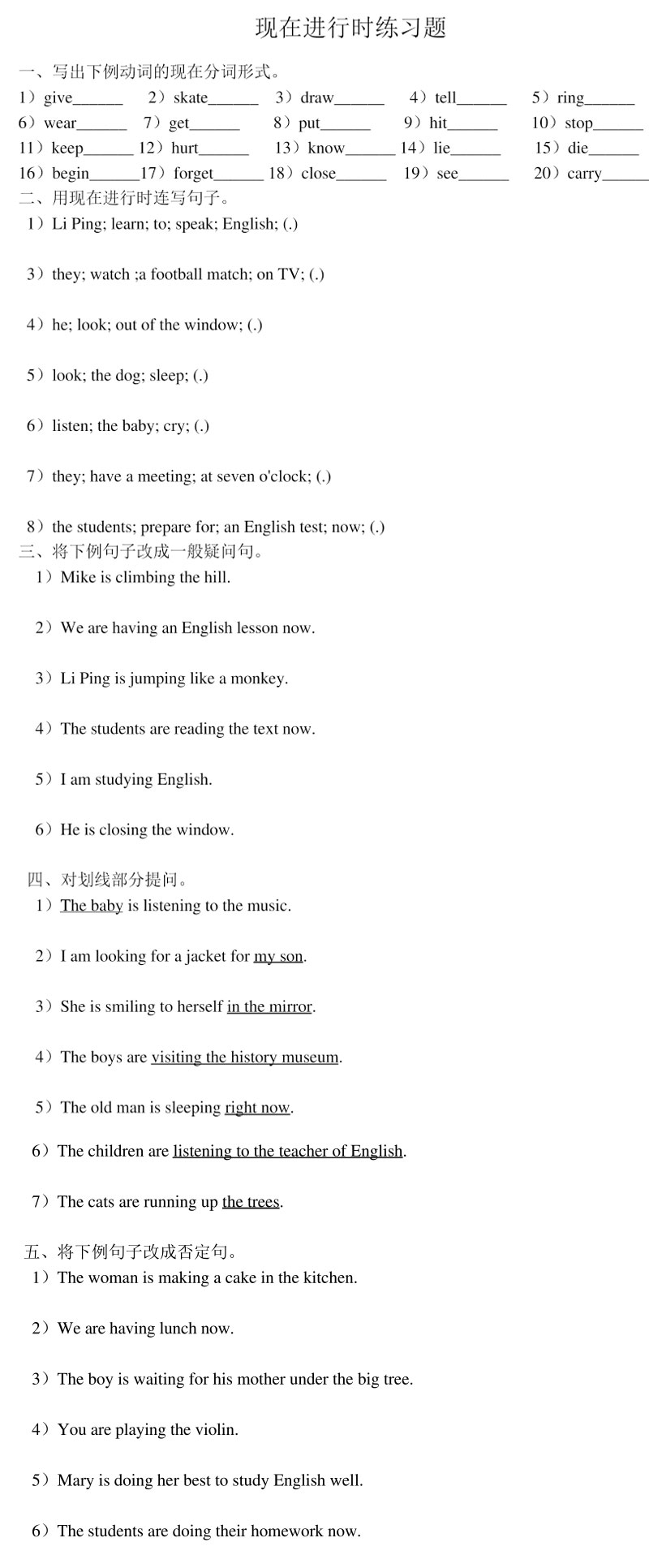 现在进行时练习题及答案