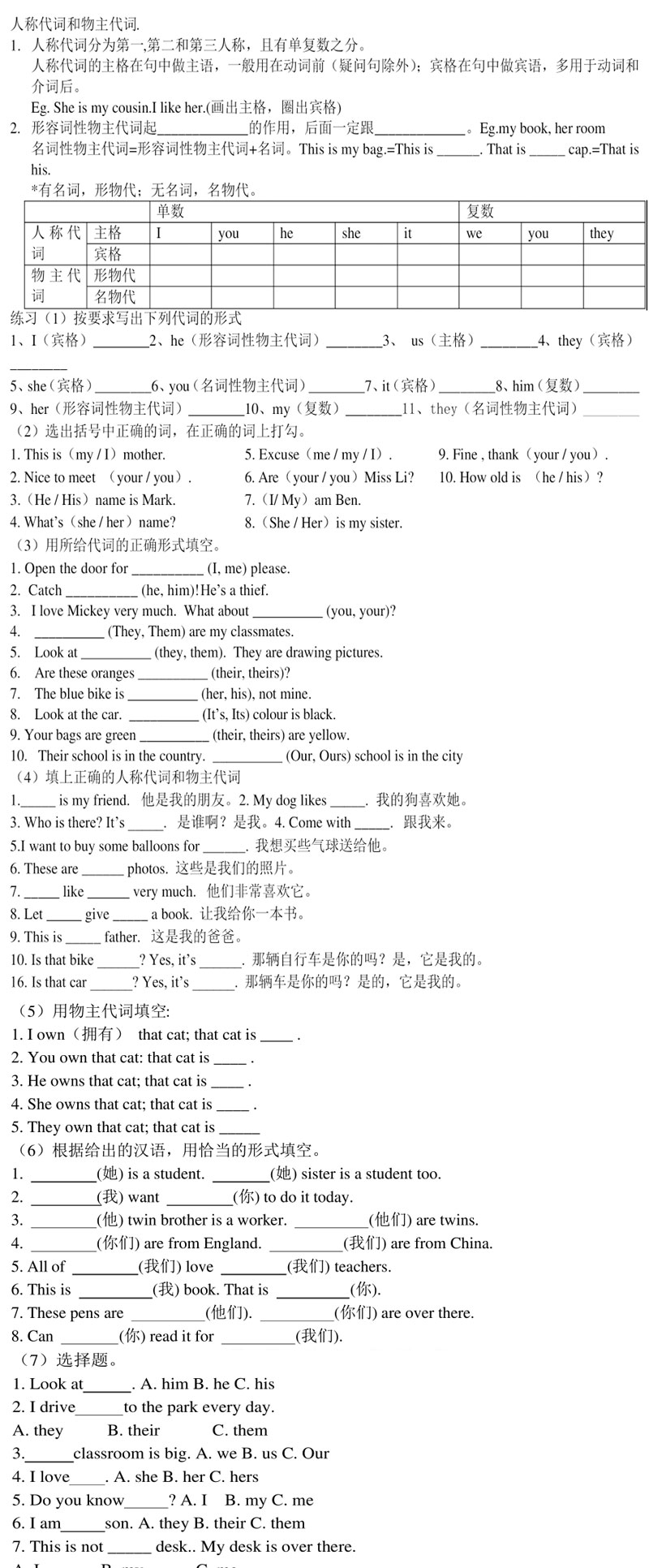 **人称代词专项练习题,格式为pdf,共2页。可打印下载**