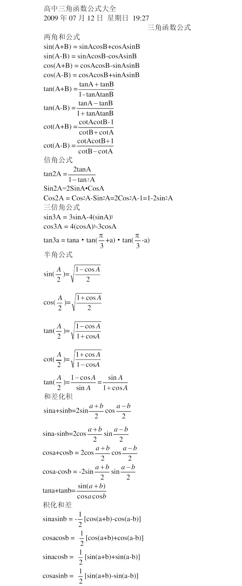 [](https://drfs.ctcontents.com/file/18725144/1030824022/c6217b/web%E5%89%8D%E7%AB%AF02/%E6%95%99%E8%82%B2%E6%A8%A1%E6%9D%BF/2024030806list.jpg) **高中三角函数公式大全,格式为pdf,共9页,可打印下载**