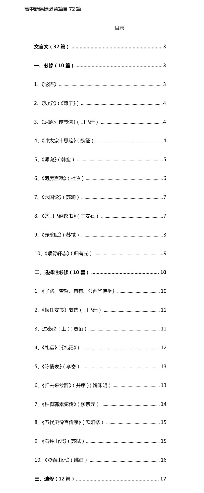 [](https://drfs.ctcontents.com/file/18725144/1058448806/65a6bf/web%E5%89%8D%E7%AB%AF02/%E6%95%99%E8%82%B2%E6%A8%A1%E6%9D%BF/2024042002list.jpg) **高中语文新课标必背古诗文72篇,格式为pdf,共58页,可打印下载**