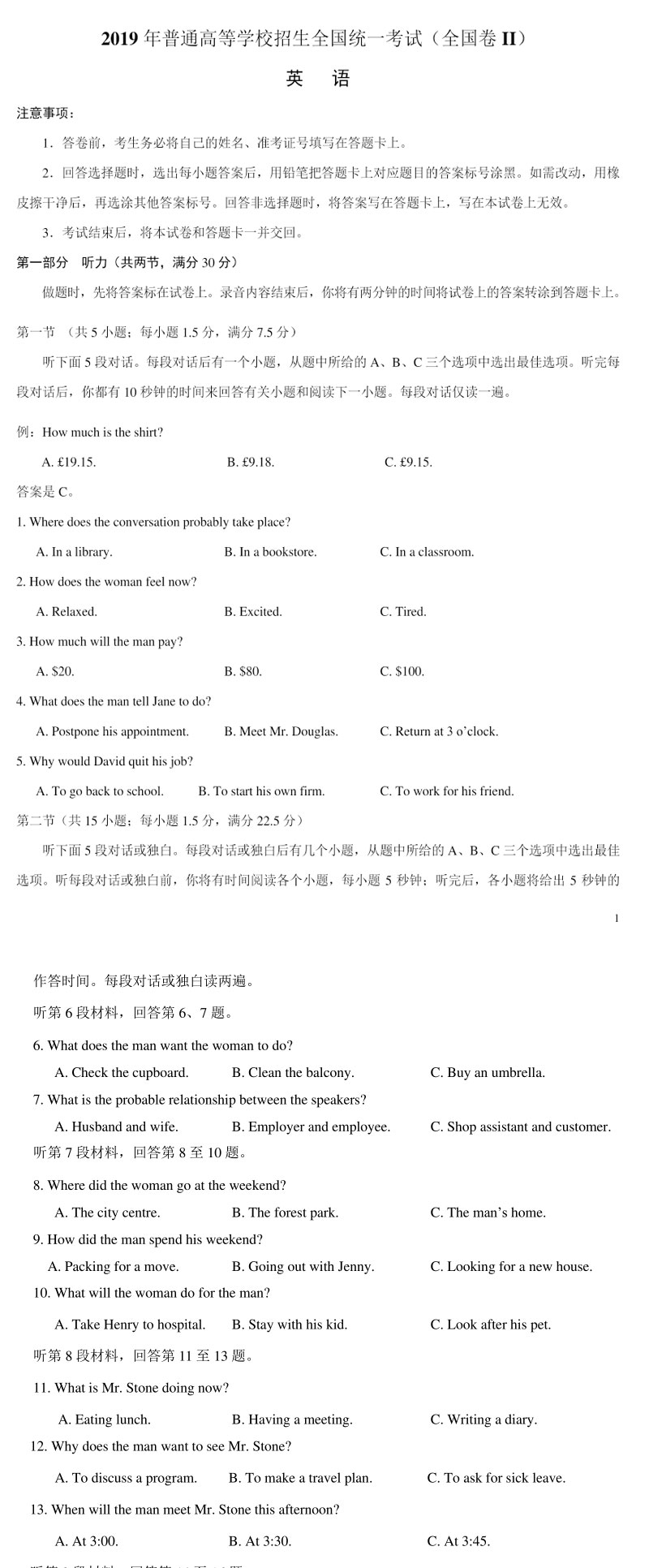 2019年全国II卷英语高考真题