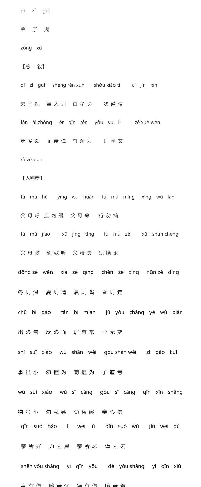 弟子规全文带拼音(完整版)