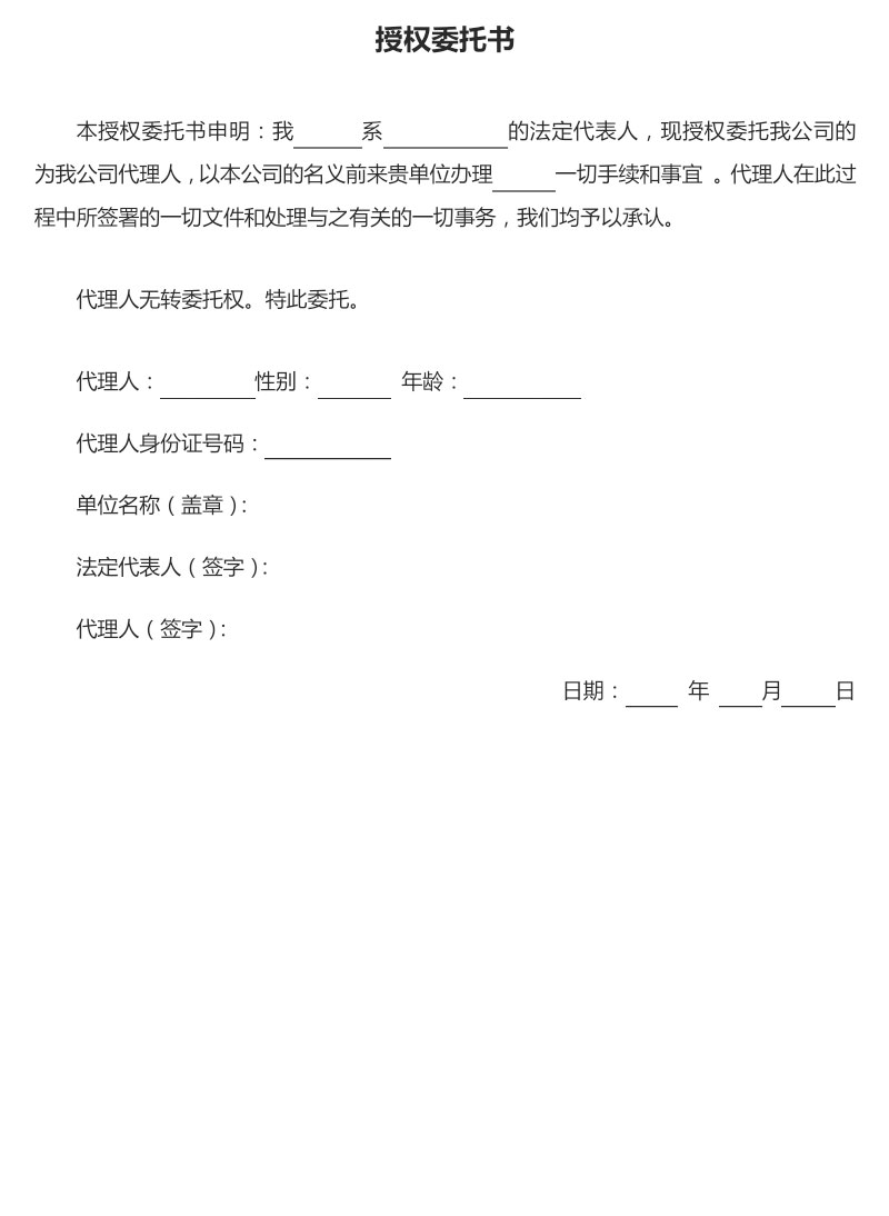 [](https://drfs.ctcontents.com/file/18725144/1246437022/a03e31/web%E5%89%8D%E7%AB%AF02/%E6%B3%95%E5%BE%8B%E6%A8%A1%E6%9D%BF/2024051607/2024051607list.jpg) **公司授权委托书样本,格式为pdf,共1页,可打印下载**
