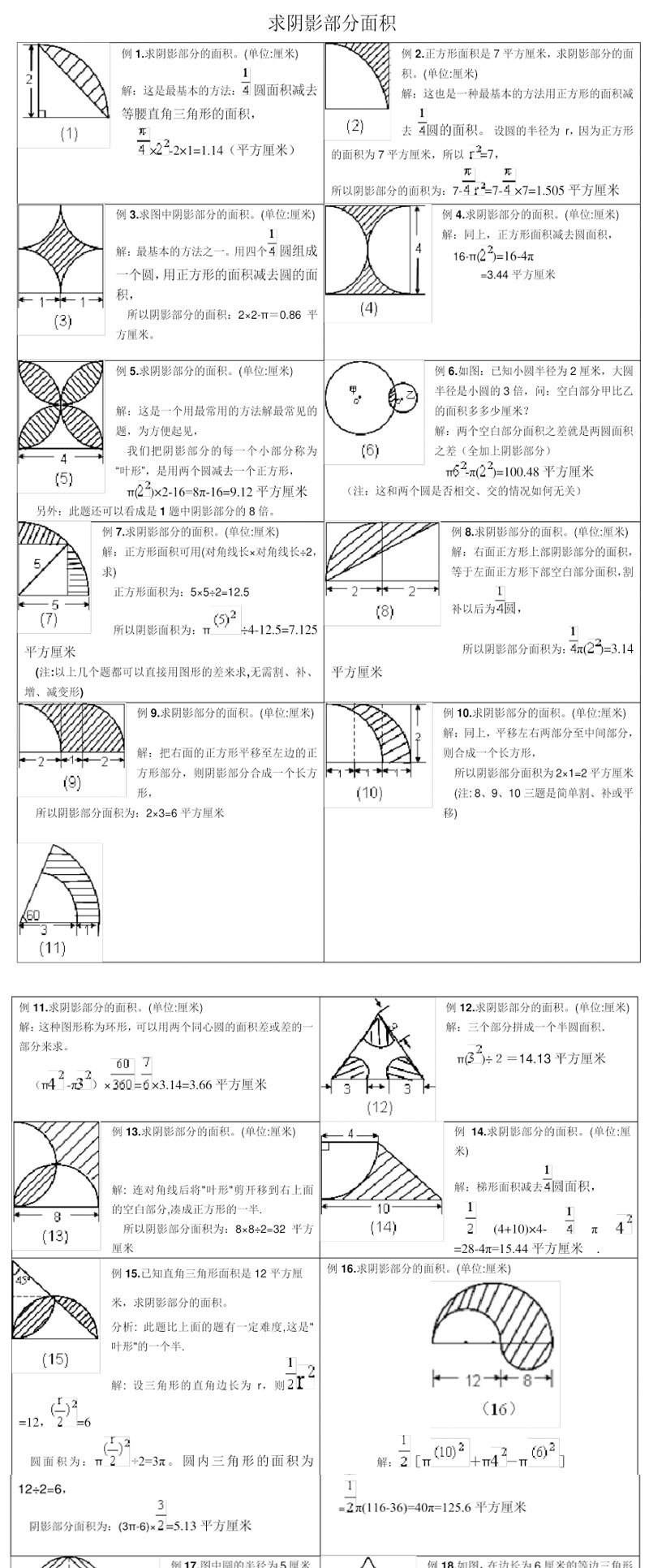 小学六年级求阴影部分面积试题和答案